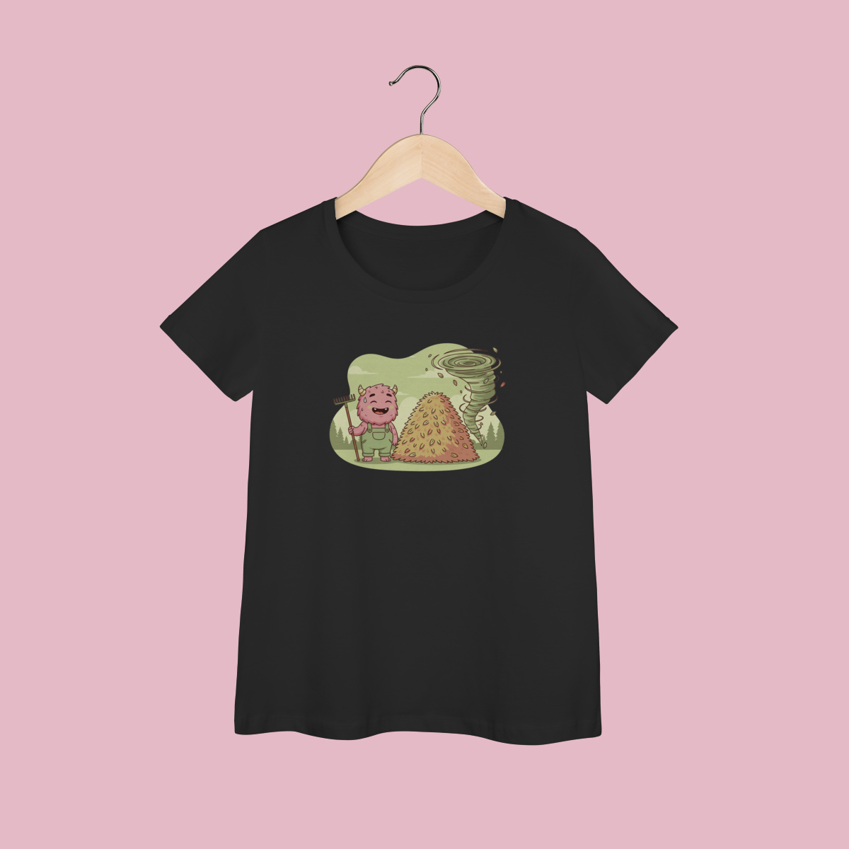 A Babylook “"Trabalho Perdio” apresenta uma ilustração divertida e original. Uma cena perfeita para quem aprecia criatividade e humor em peças exclusivas.